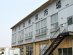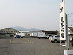 明治37年頃、市街地、寄居町の僅かな場所で青果市場を開設した記録がありますが、その後、大正5年に移転し、市内坂下町2108番地に敷地900㎡・建物300㎡を借受け、渋川協同魚菜市場として水産物の取扱を含めた市場として運営され、当時の買受組合員は30名程でした。