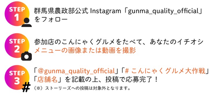 参加店のこんにゃくグルメを食べて、あなたのイチオシメニューをInstagramにぜひご投稿ください!